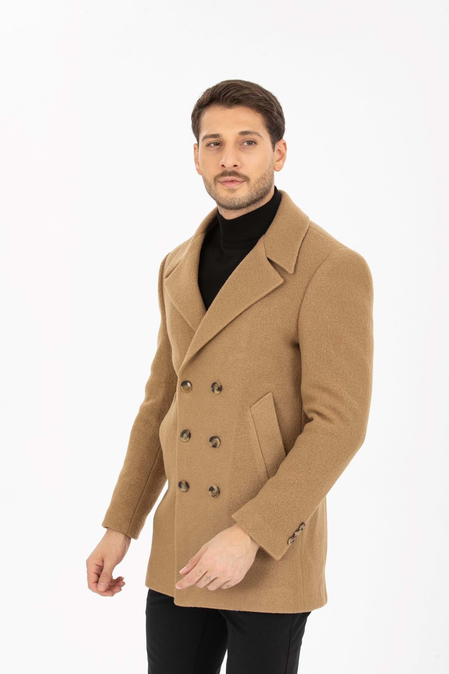 Vito Andolini Kahverengi Kaşmir Slim Fit Kruvaze Erkek Kısa Palto