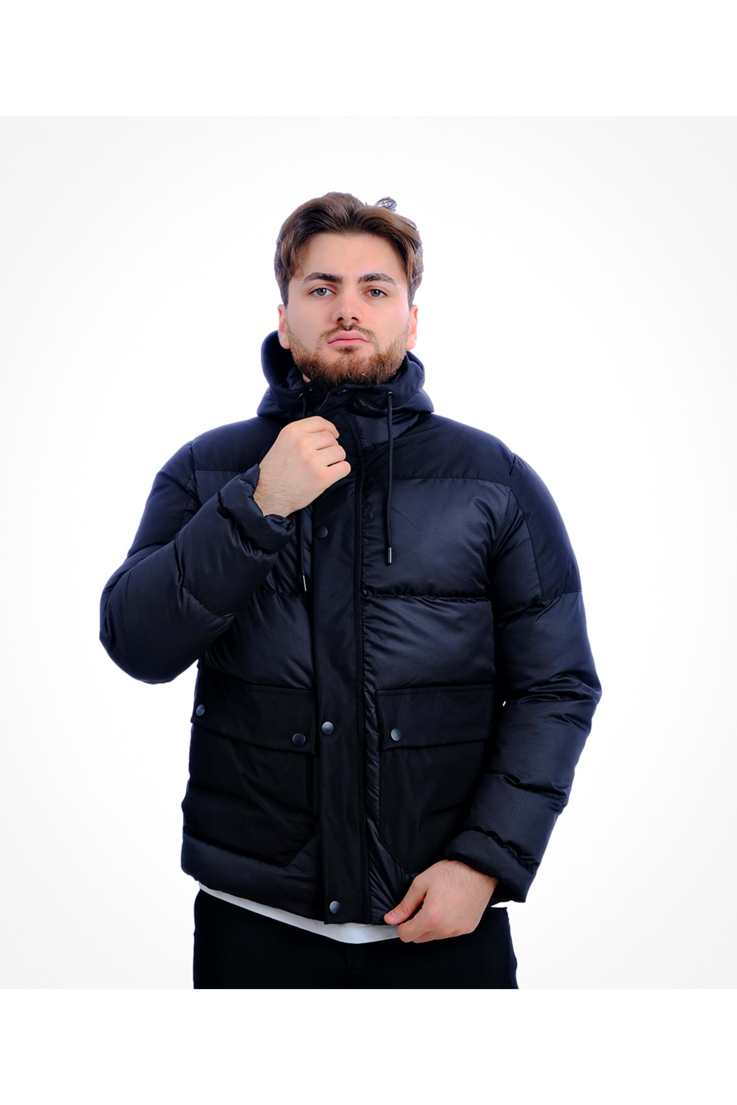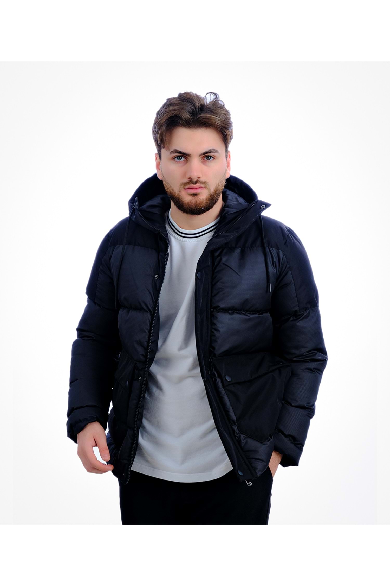 Czk Siyah Dolum Monza Şapkalı Kışlık Erkek Mont