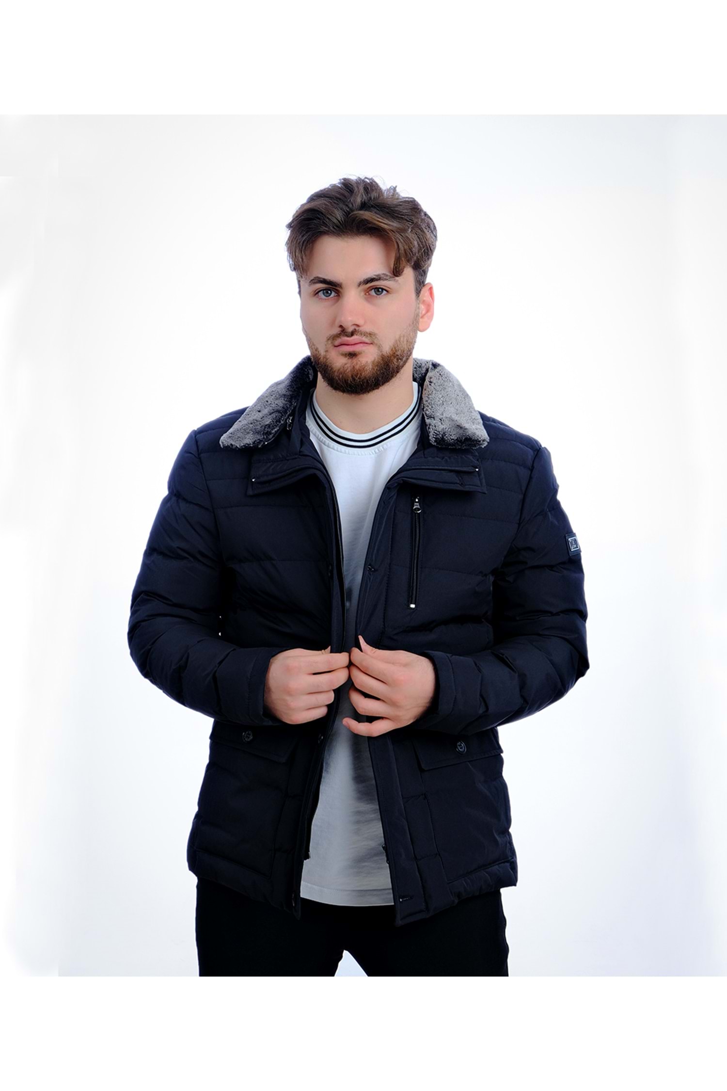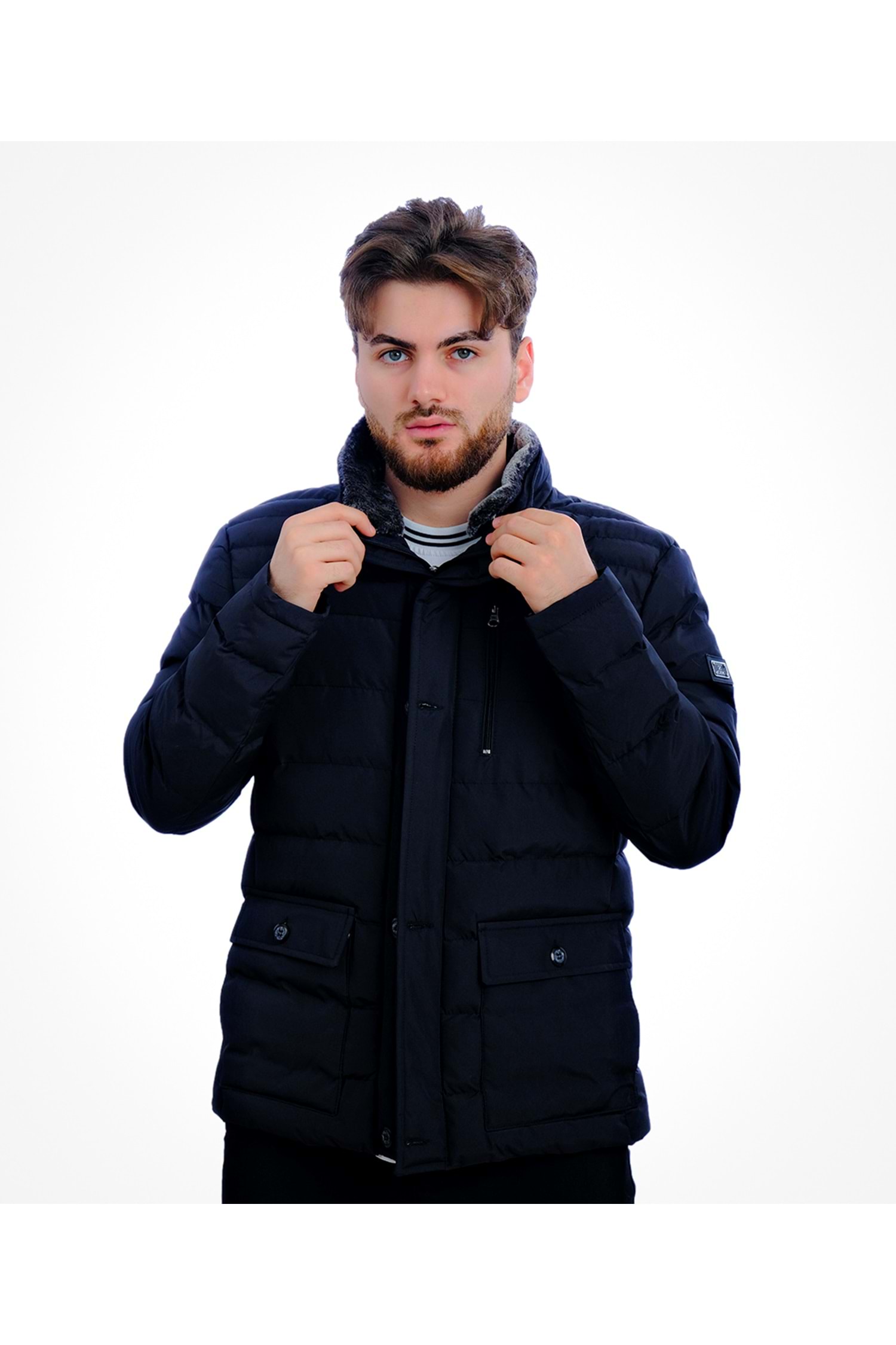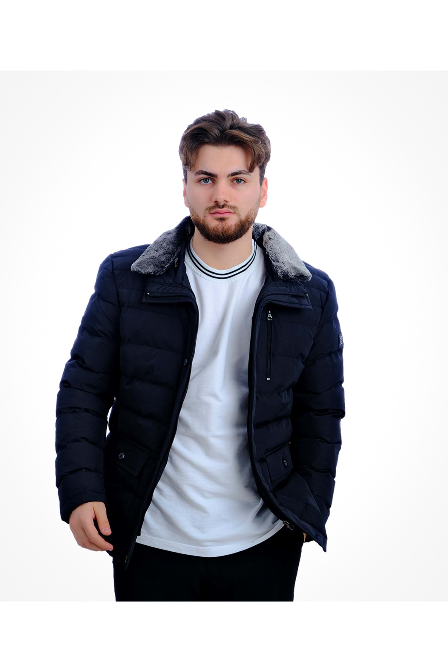 Czk Siyah Lopez Dolum Kürklü Kışlık Erkek Mont