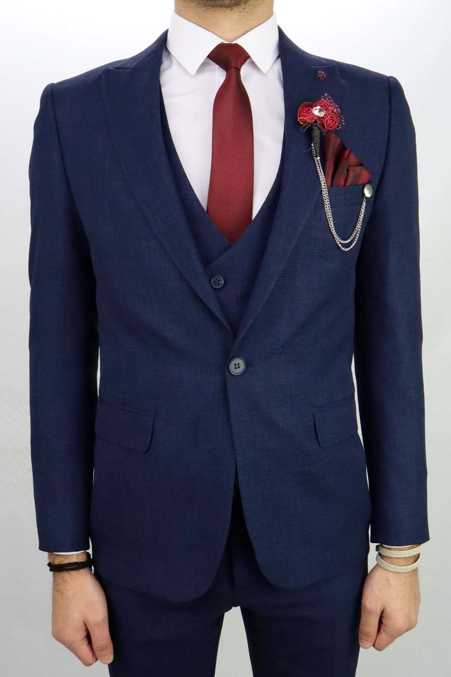 Vito Andolini Lacivert Slim fit Yelekli Erkek Takım Elbise
