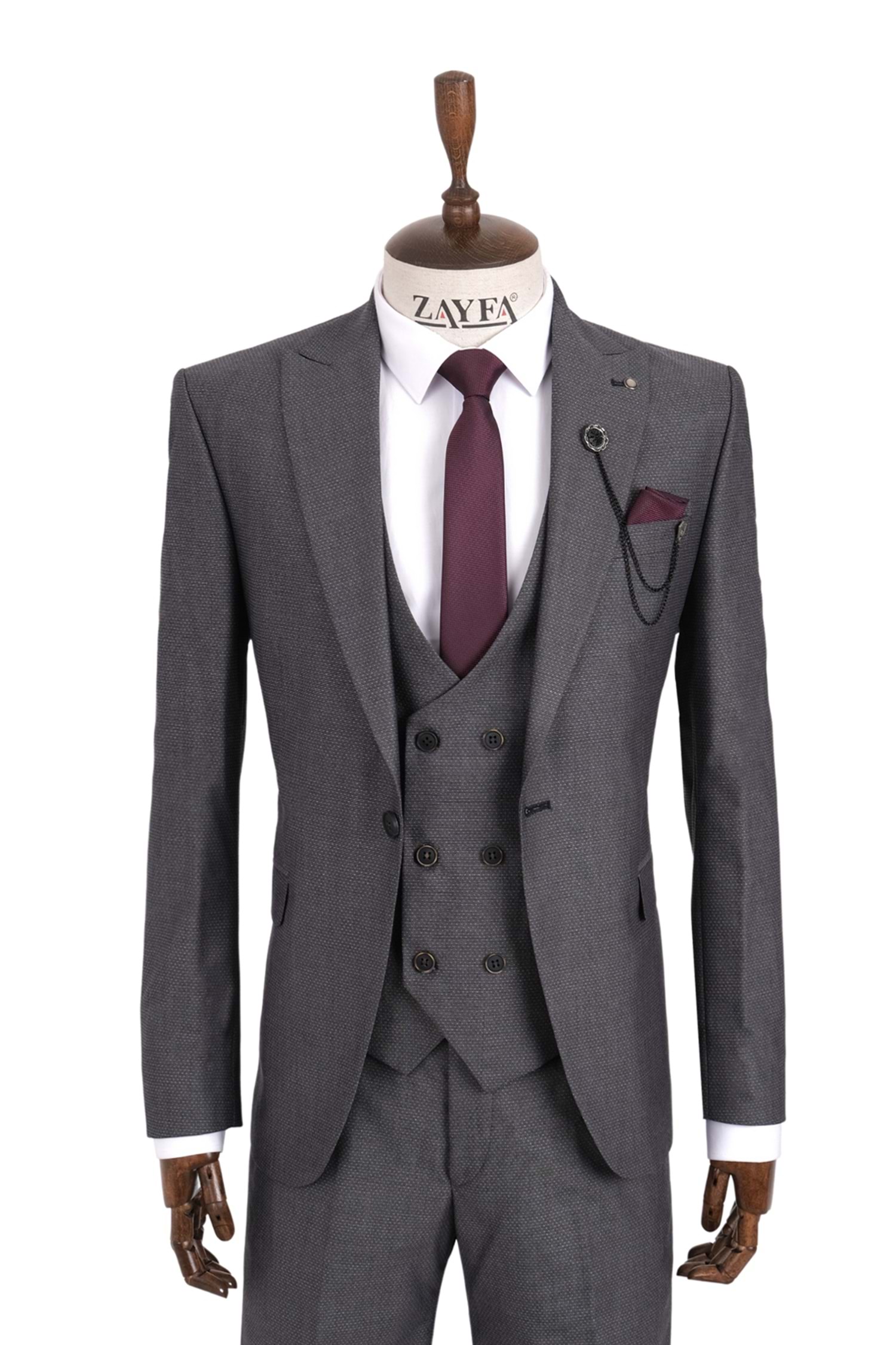 Zayfa Gri Slim Fit Erkek Yelekli Takım Elbise