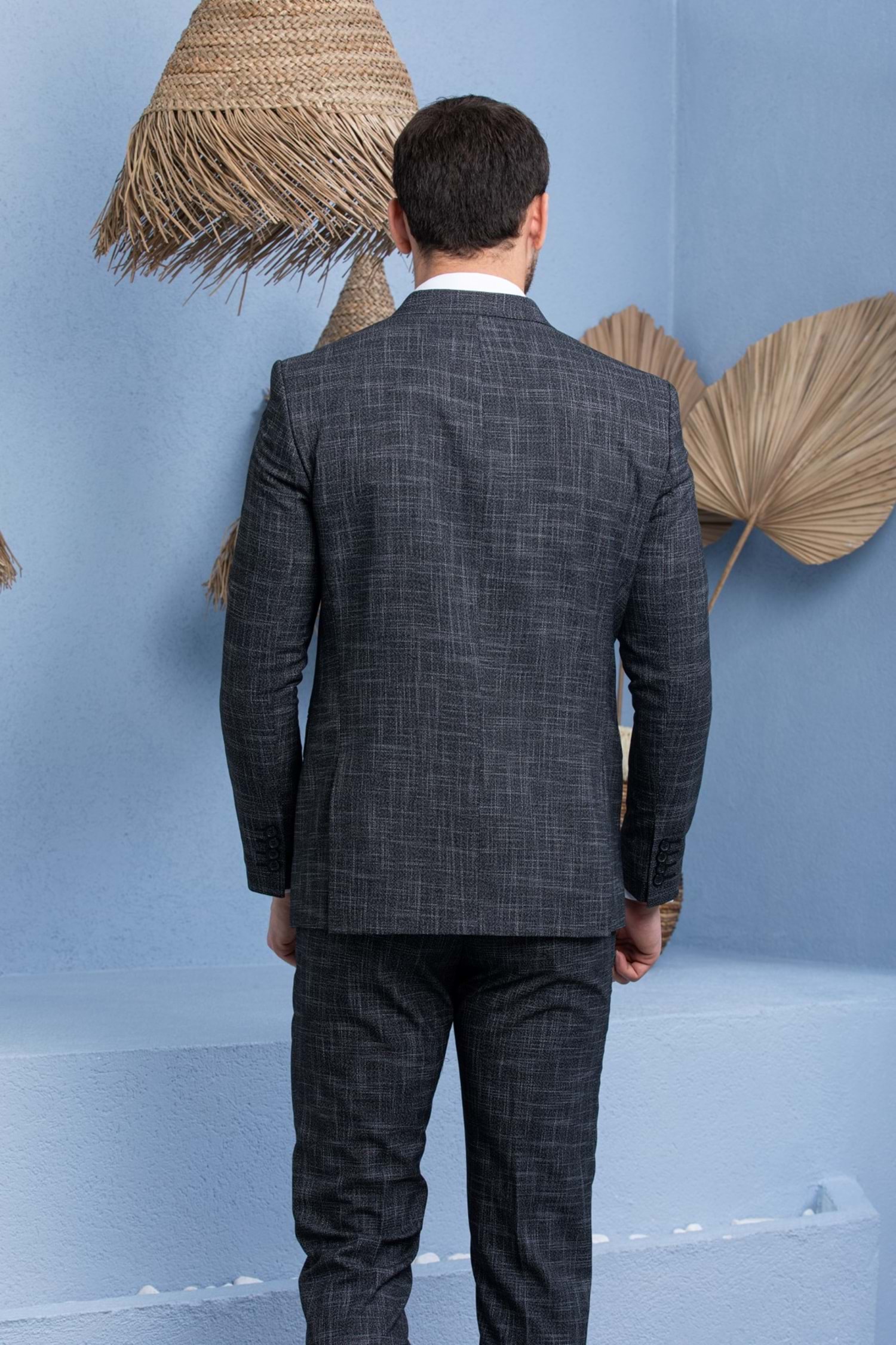 Zayfa Siyah Desenli Slim Fit Kruvaze Erkek Takım Elbise