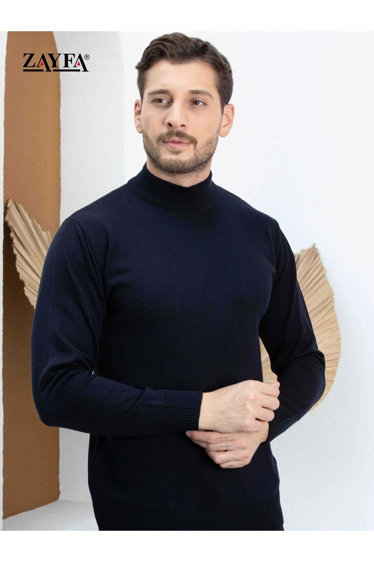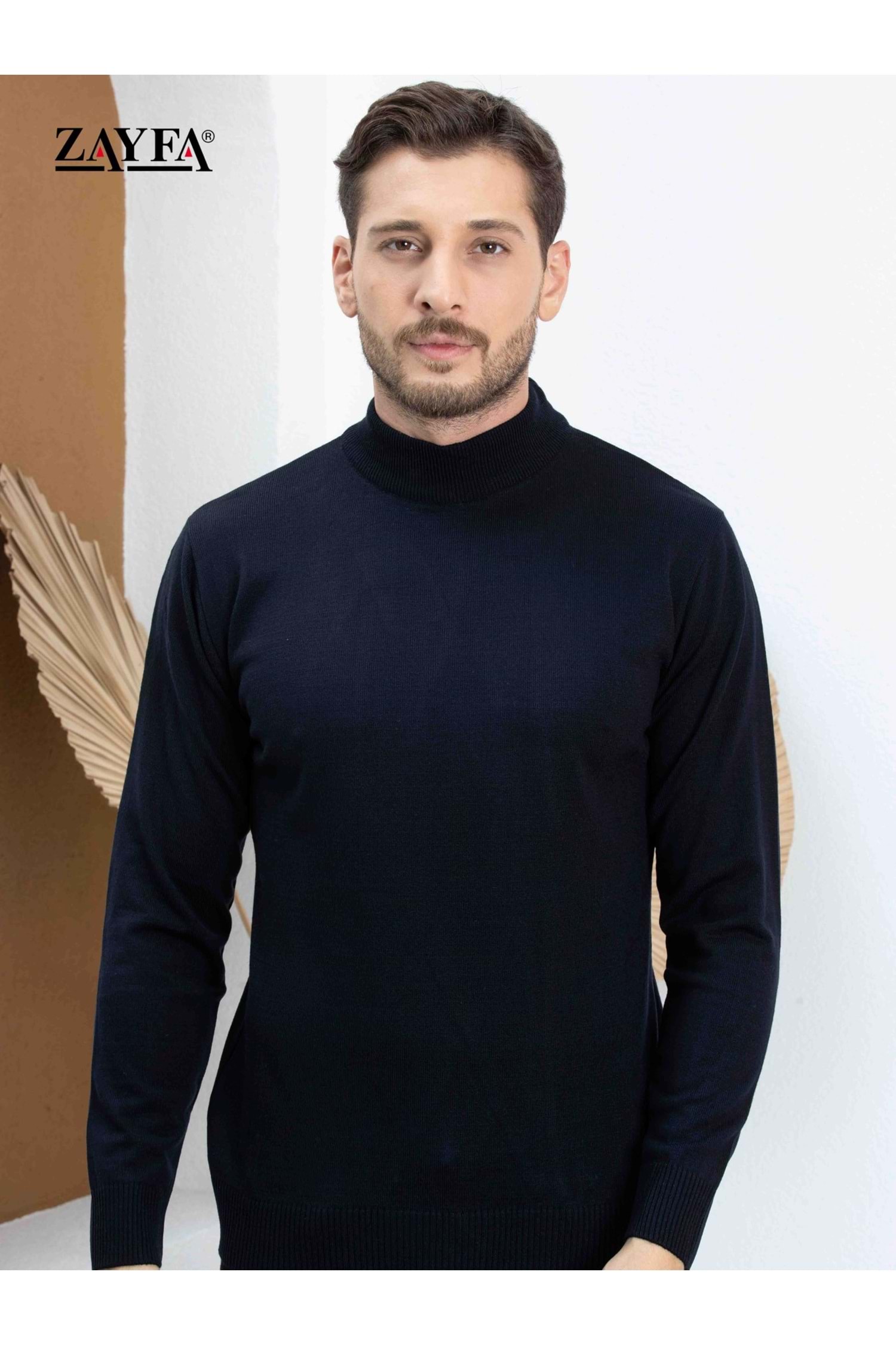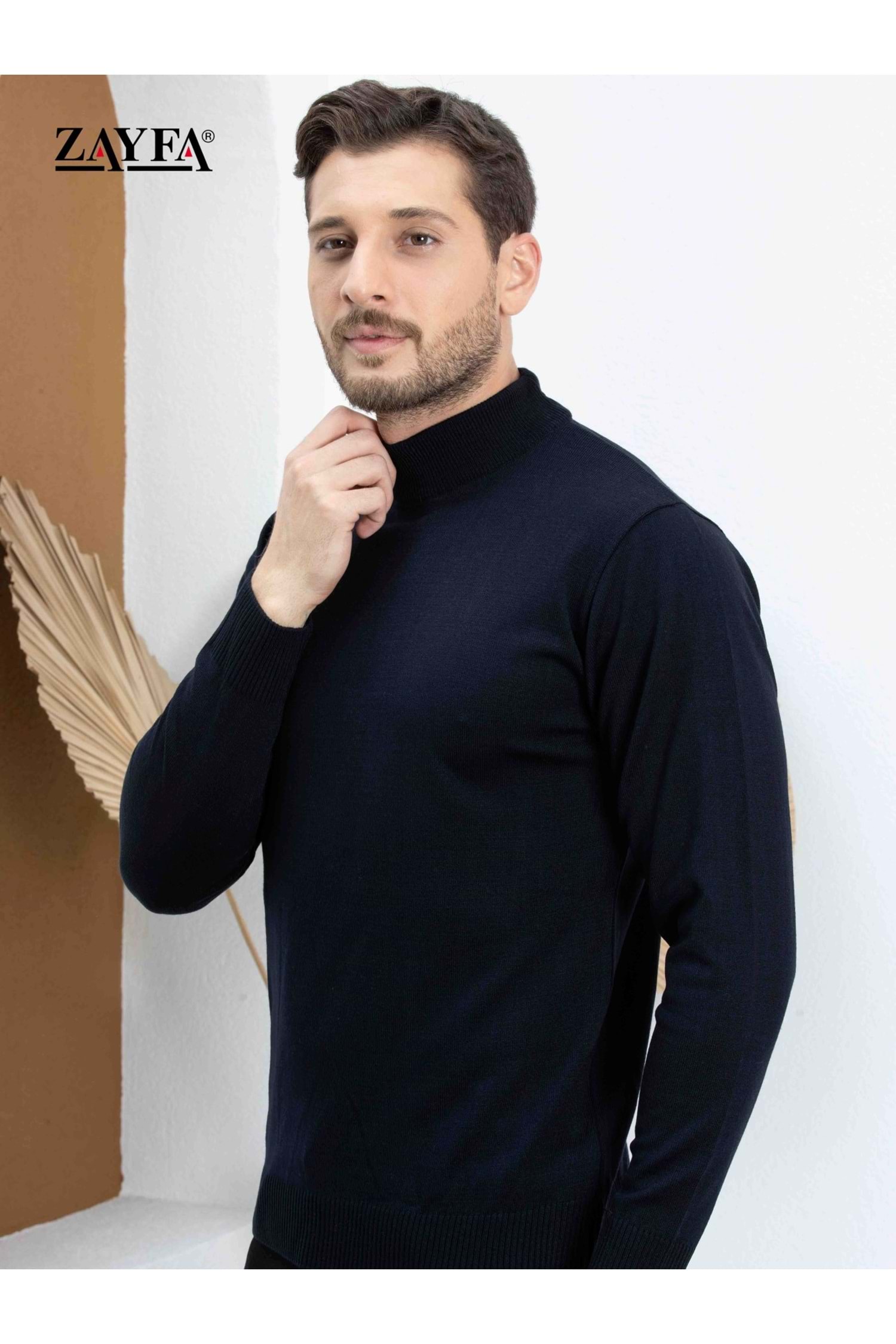 Jerox Lacivert Yarım Balıkçı Yaka Erkek Triko Kazak